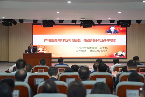 集團黨委邀請河南省委黨校中共黨史教研部王春亮副教授,以《嚴格遵守黨內法規 做新時代好干部》為題展開宣講。王教授分別從紀律嚴明是黨的光榮傳統和獨特優勢、黨員干部嚴格遵守黨內法規的迫切性和做嚴守黨內法規好干部的主要著力點三個方面宣講,號召全體黨員干部要以黨紀學習教育為契機,上好黨性鍛煉“必修課”。
