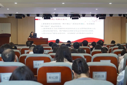 市紀委監委駐城發集團紀檢監察組副組長姬小靜,以《做遵規守紀的明白人》為題,分別從《條例》的歷史沿革、修訂意義、新變化和特點等方面,逐章逐條深度解讀新修訂的《中國共產黨紀律處分條例》。深刻領悟全面從嚴治黨的實踐要求,切實學出政治忠誠、學出清正廉潔、學出擔當作為。